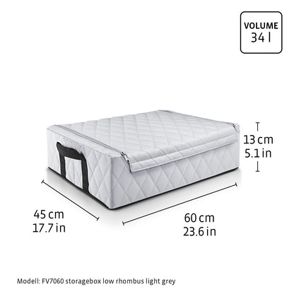 Parfait pour glisser sous un lit ou sur une armoire : Structure indéformable avec cadre métallique rabattable vers l’intérieur